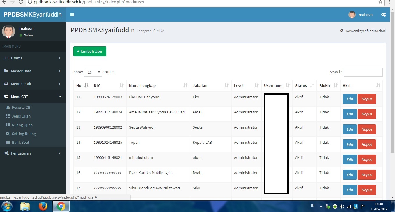 Setelah sukses menerapkan CBT untuk calon peserta didik baru(PDB) pada tahun ajaran 2016/2017, SMK Syarifuddin kembali menerapkan tes serupa dengan pelayanan yang lebih istimewa pada tahun ajaran 2017/2018 ini. Kelebihan sistem saat ini dari pada sistem sebelumnya terletak pada integrasi antara sistem PPDB, CBT dan SIMKA.