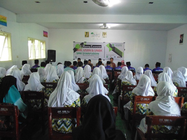 Pada saat pembukaan UKK, kepala SMK Syarifuddin Bpk. Sayyidi, S.Pd.,MA. Memberikan arahan kepada siswa kelas XII, agar dalam mengikuti UKK, harus tenang, jangan gegabah dalam mengerjakan soal-soal. Dan yang paling penting, semua apa yang dikerjakan hari ini, semua harus diniatkan ibadah karena Allah SWT. Karena dengan niat seperti itu insyaallah hasil Ujian ini baik sesuai dengan harapan bersama. Acung