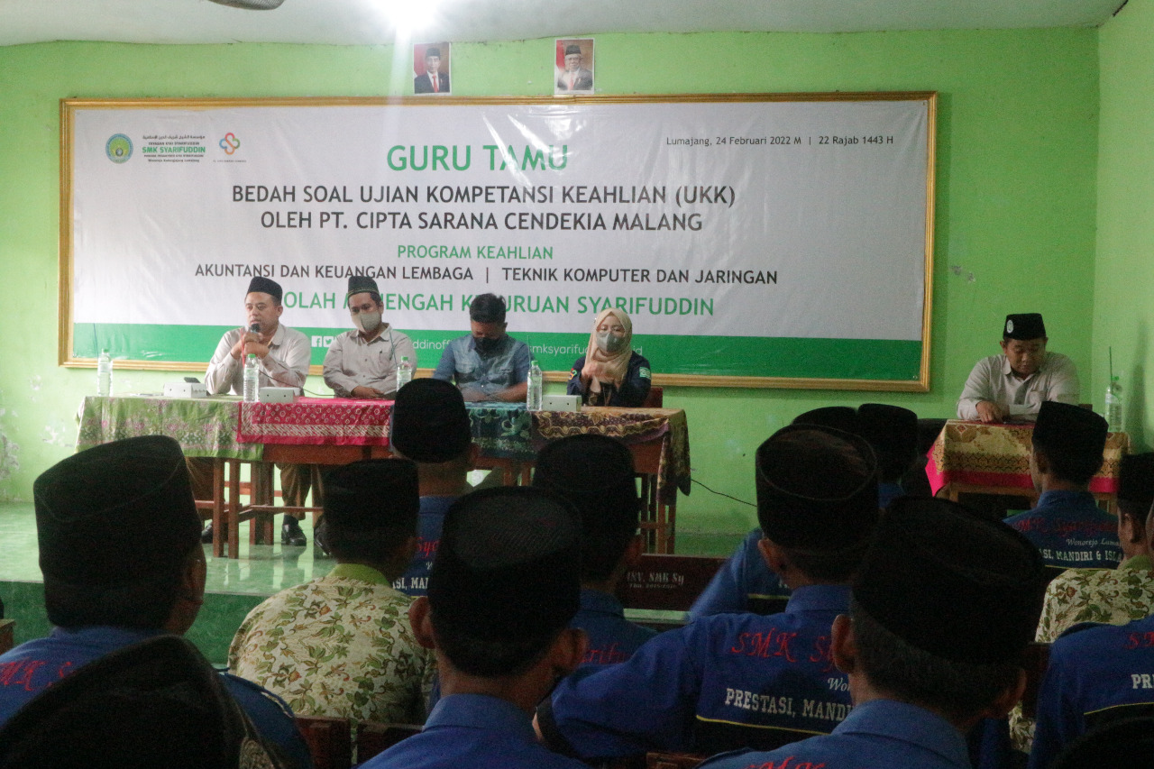 Menyikapi hal itu, sebagai bentuk persiapan bagi siswa kelas XII, SMK Syarifuddin berinisiatif melaksanakan Bedah Soal UKK, dengan mendatangkan guru tamu dari PT. Cipta Sarana Cendekia Malang.