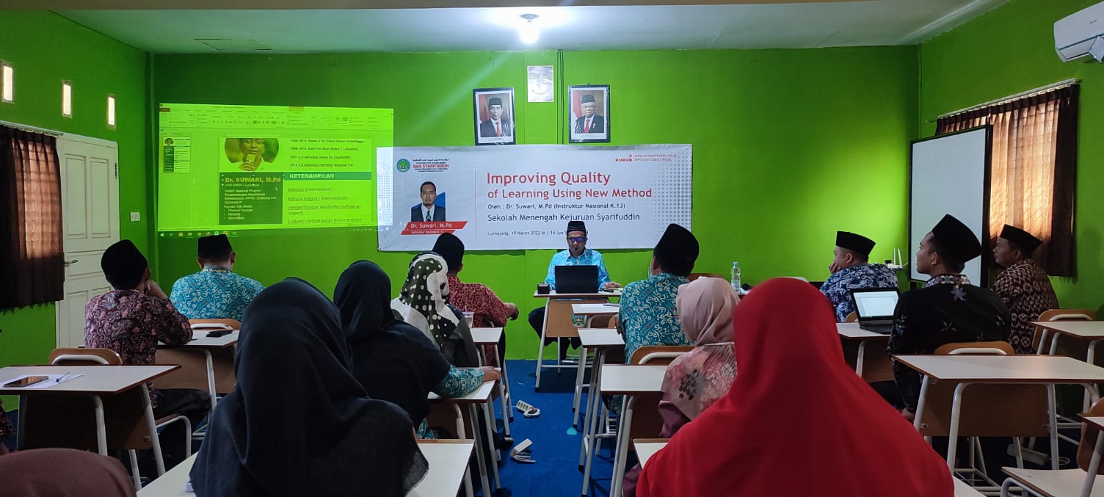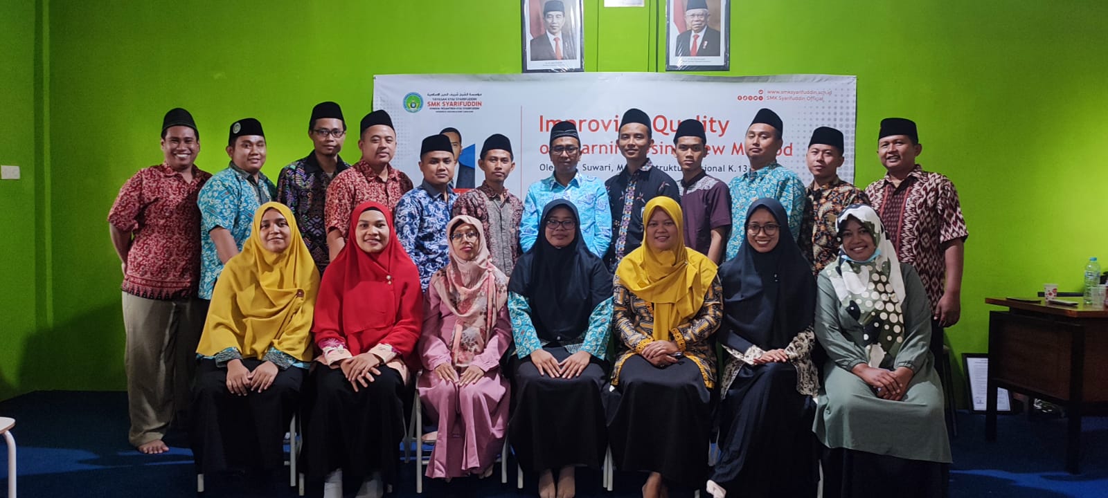 Dalam rangka mengasah pengetahuan guru, SMK Syarifuddin Lumajang laksanakan pelatihan metode belajar mengajar yang efektif dan menyenangkan bagi kalangan guru SMK Syarifuddin (19/03/2022), hal ini dilakukan semata untuk mengupdate kembali kemampuan guru SMK Syarifuddin dalam hal pengelolaan kelas agar dalam proses pembelajaran dikelas tidak jenuh dan membosankan, yang menyebabkan hasil belajar siswa kurang maksimal.